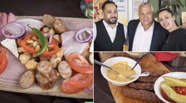Meniul ales a fost unul tradițional românesc. Premierul ungar a început masa cu un platou rece care a conținut jumări de casă, slănină afumată, cârnați și salam de casă, roșii și murături. A urmat o ciorbă de burtă cu ardei iute și smântână din belșug, apoi mititei la grătar – câte șase-șapte pentru fiecare persoană din delegație. La desert, toți au primit papanași cu gem de afine și smântână.